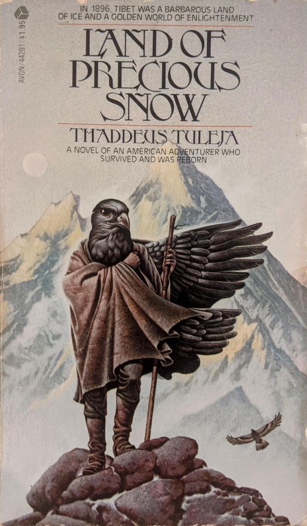 A prolific man, indeed, Tuleja worked as an editor in the 1970s with Venus Freeway Press, where he oversaw the K’ing Kung-Fu series and wrote three (not seven) of those books. He became interested in Tibetan Buddhism and wrote Land of Precious Snow to invoke a world where those spiritual interests could be pursued, through literary adventure in the vein of, say, H. Rider Haggard or Talbot Mundy, to Tibet itself. Tuleja also wrote an unpublished sequel, Guardian of the Snow, and had plans for a tetralogy that never saw the light of day.