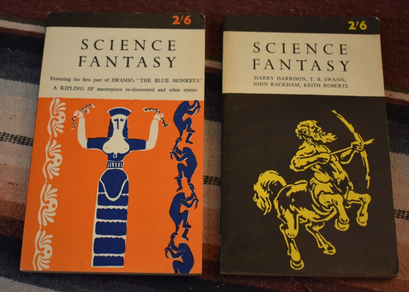Prior to 1966, Thomas Burnett Swann was a relative unknown in the American sff scene. His stories had mostly been published in the UK, in Science Fantasy magazine, a sister publication to the magazine that would become the early locus of the New Wave: New World. In the early 1960s, Science Fantasy was shifting more clearly to fantasy stories under the editorship of John Carnell, and Swann’s provocative, inventive fantasies of the ancient and medieval world, tweaked to his own unique vision of the mythic past, were a staple of the magazine in the 1960s under the editorship of Kyril Bonfiglioli. The stories that would become Day of the Minotaur were initially serialized in 1964–1965 under the title “The Blue Monkeys” and reprinted in full in the British anthology SF Reprise 3 in 1966, before eventually finding their way to the US in the form of an Ace Books paperback, under the title that we now know it, and with a cover by Gray Morrow that captures both the narrative’s ancientness and anachronism in one breath (though I much prefer the first two Science Fantasy covers featuring the story).